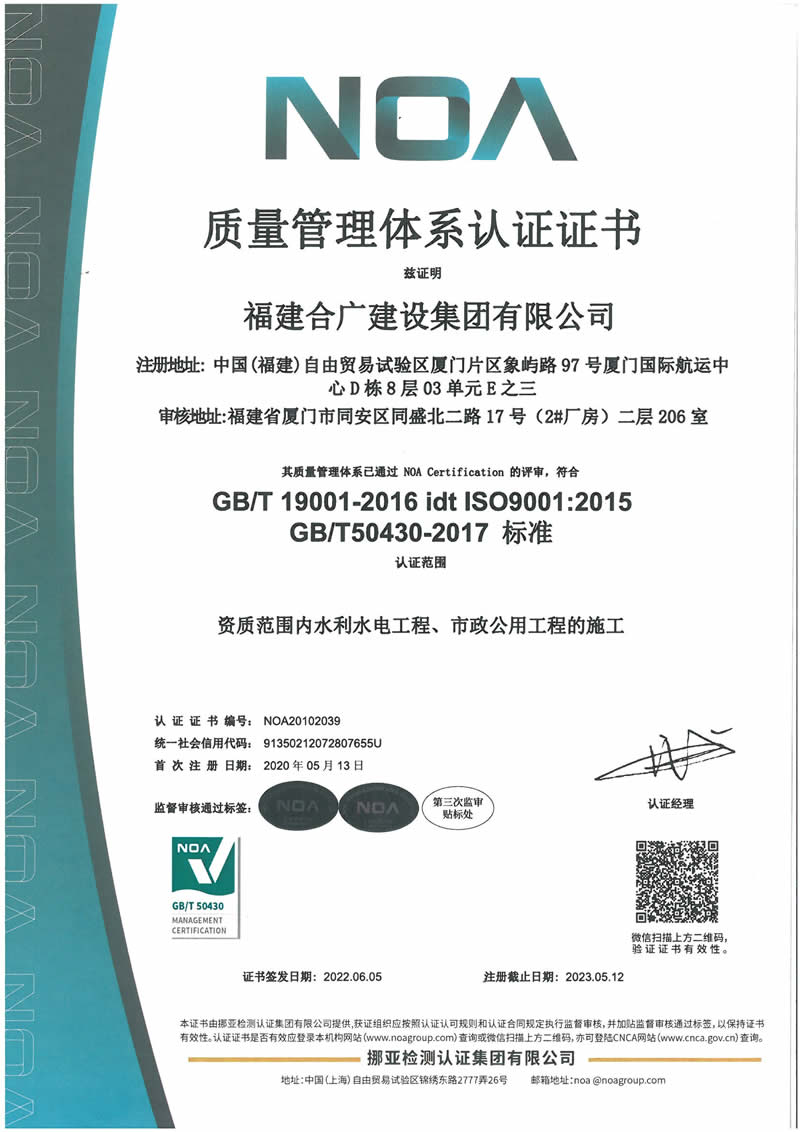 2022質(zhì)量管理體系認(rèn)證證書